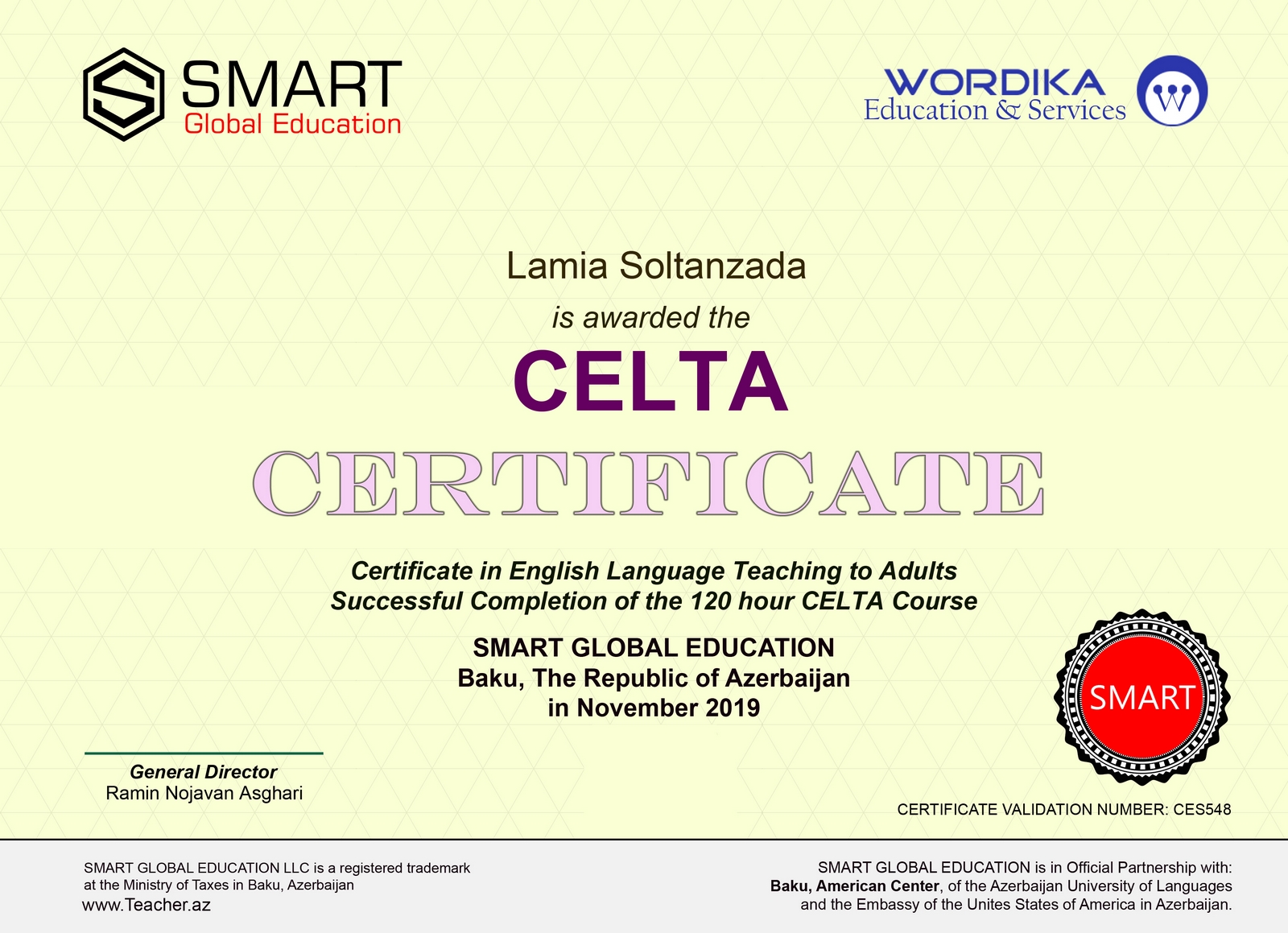 I have taught EFL and preparation for International exams/tests to chiefs, employees, staff, and key members of a variety of governmental and non governmental companies, banks, oil related giant heads, ministries, universities, institutes, NGO's, organizations etc since 2009 in Baku, The Republic of Azerbaijan ... To name a few Giants: