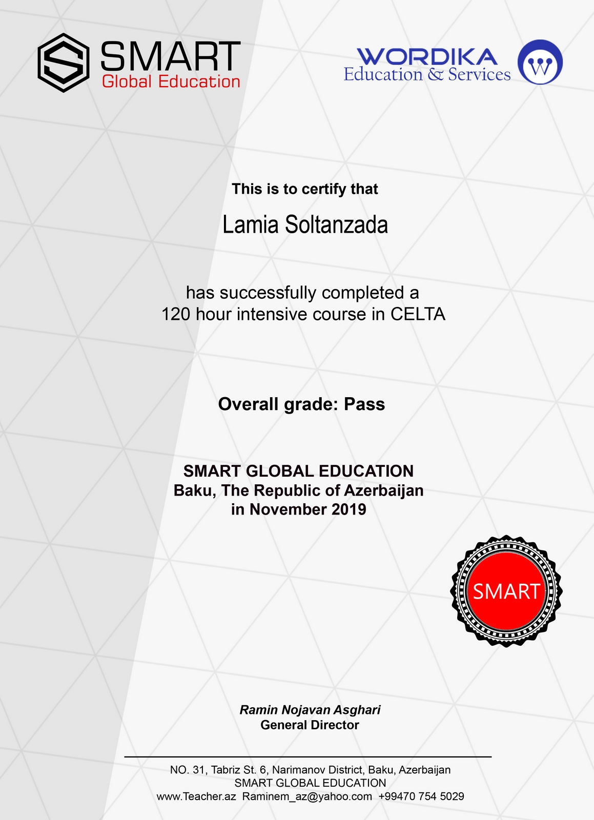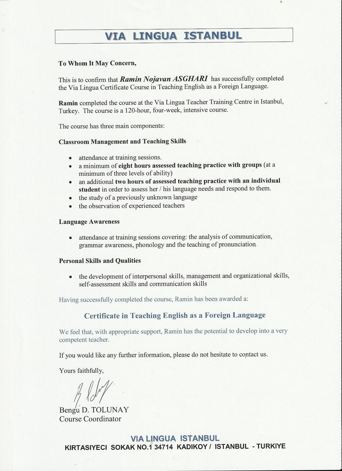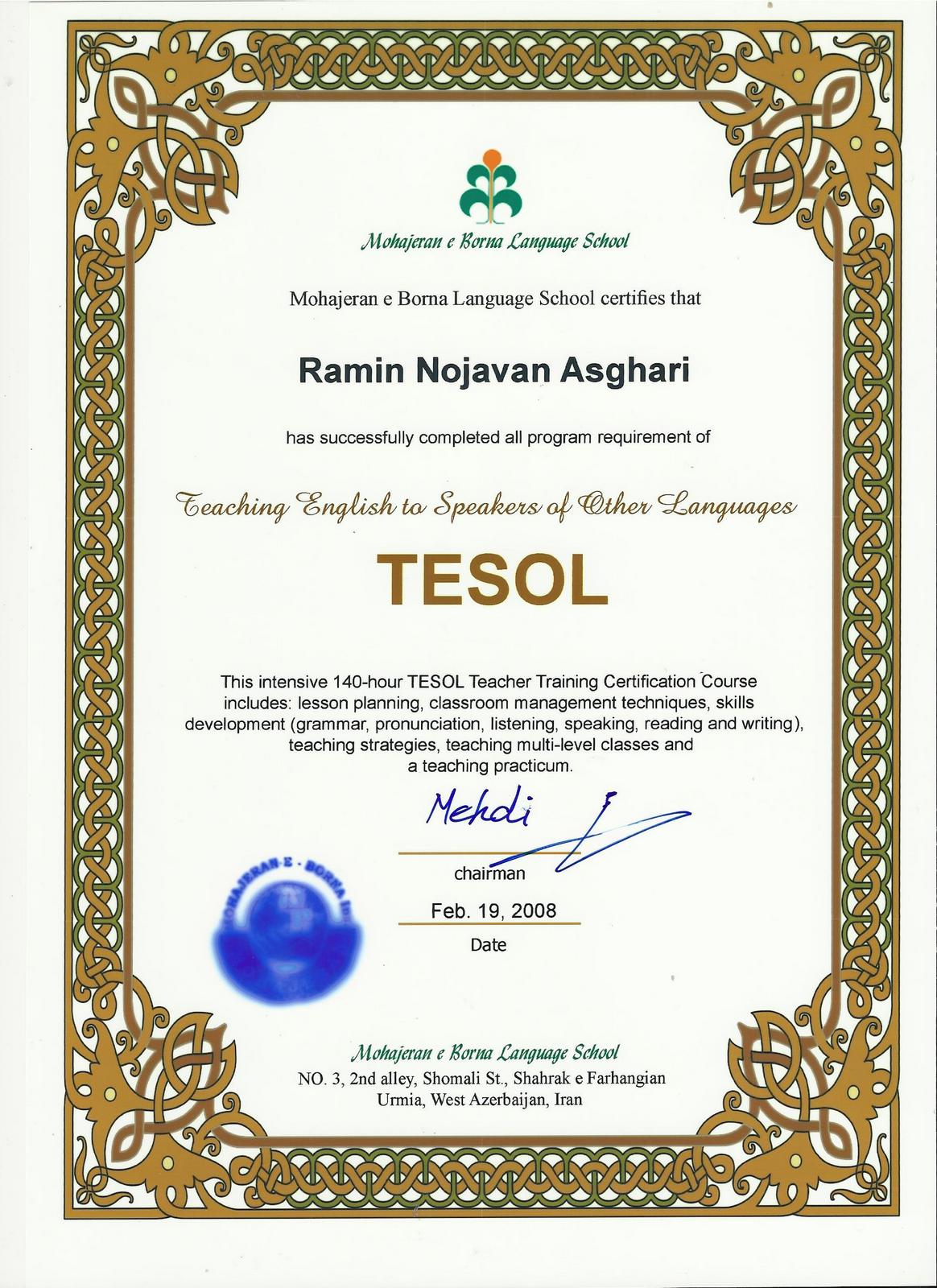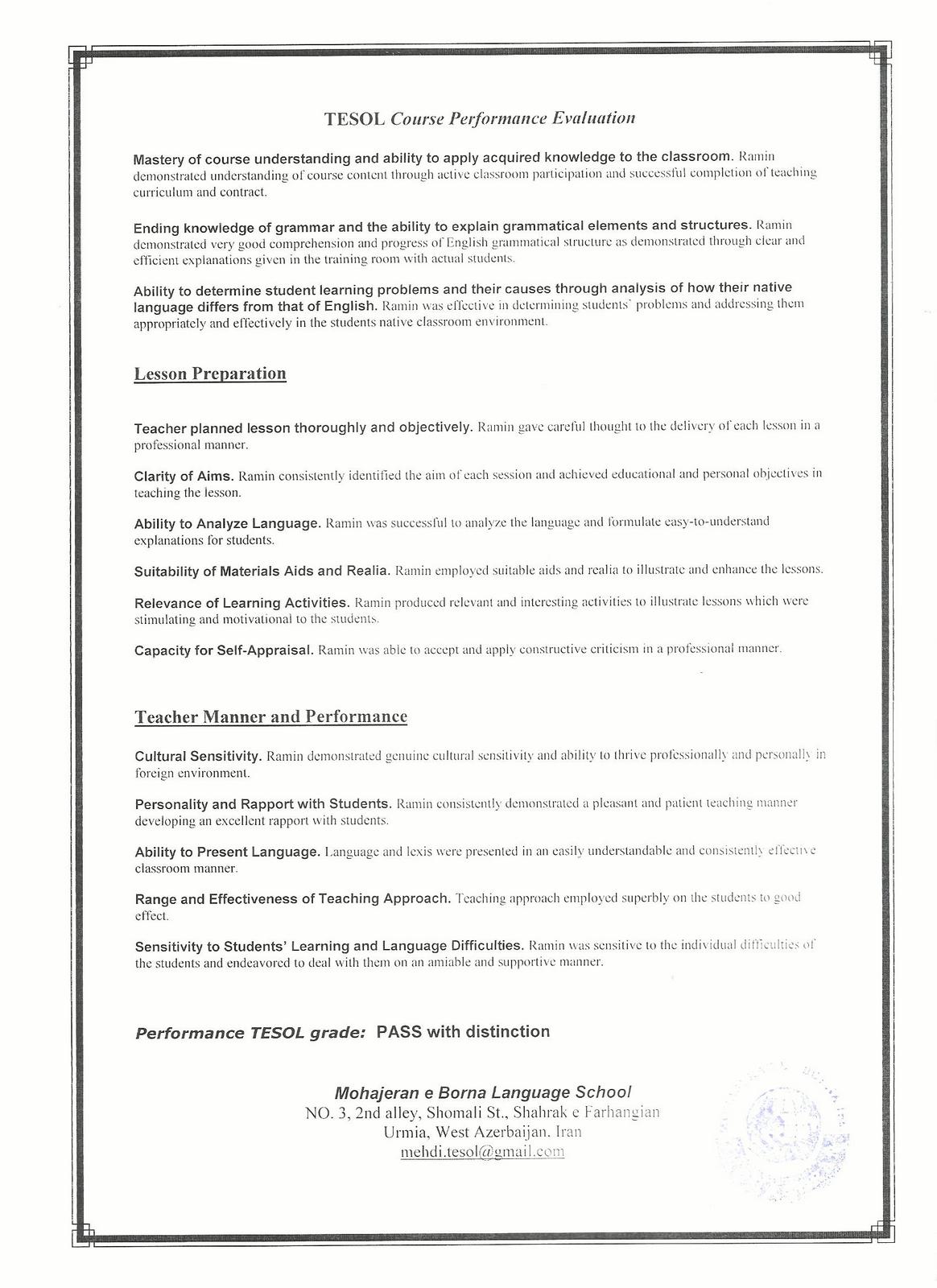 RAMINEM Teacher's certificates